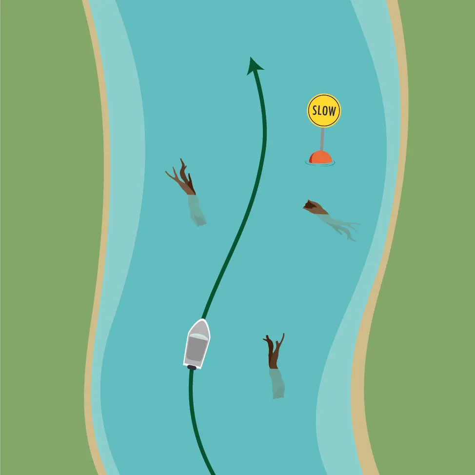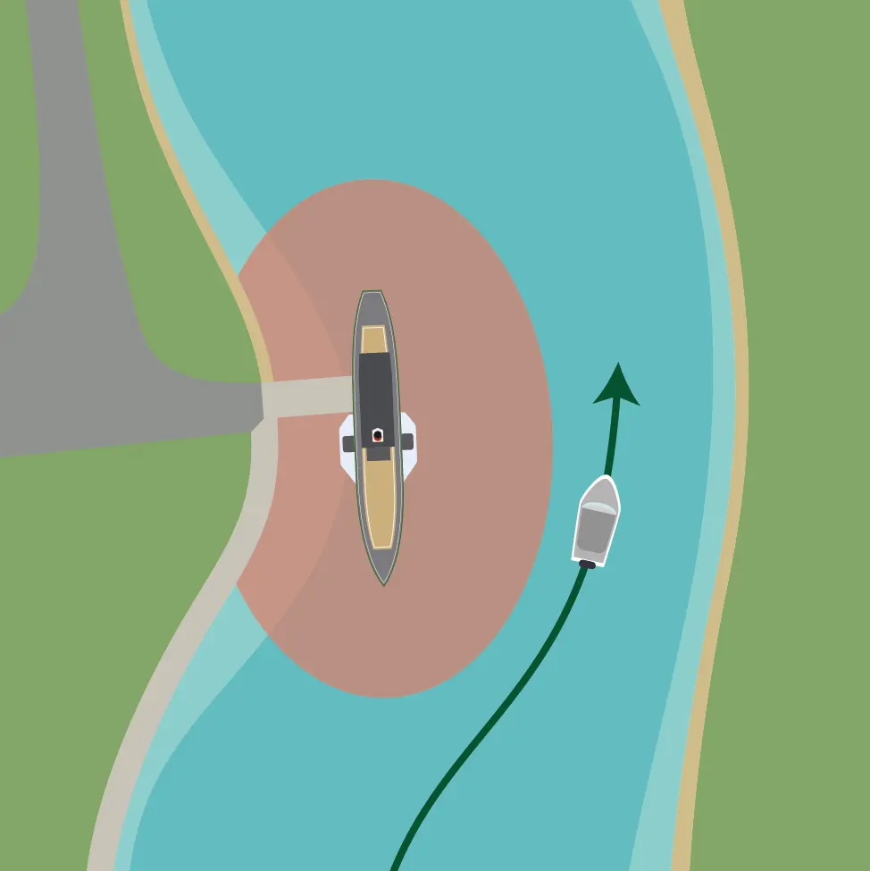 Ensure your vessel’s wake does not cause danger, damage, or harm to other boats, structures, or people, whether they’re underway or moored.