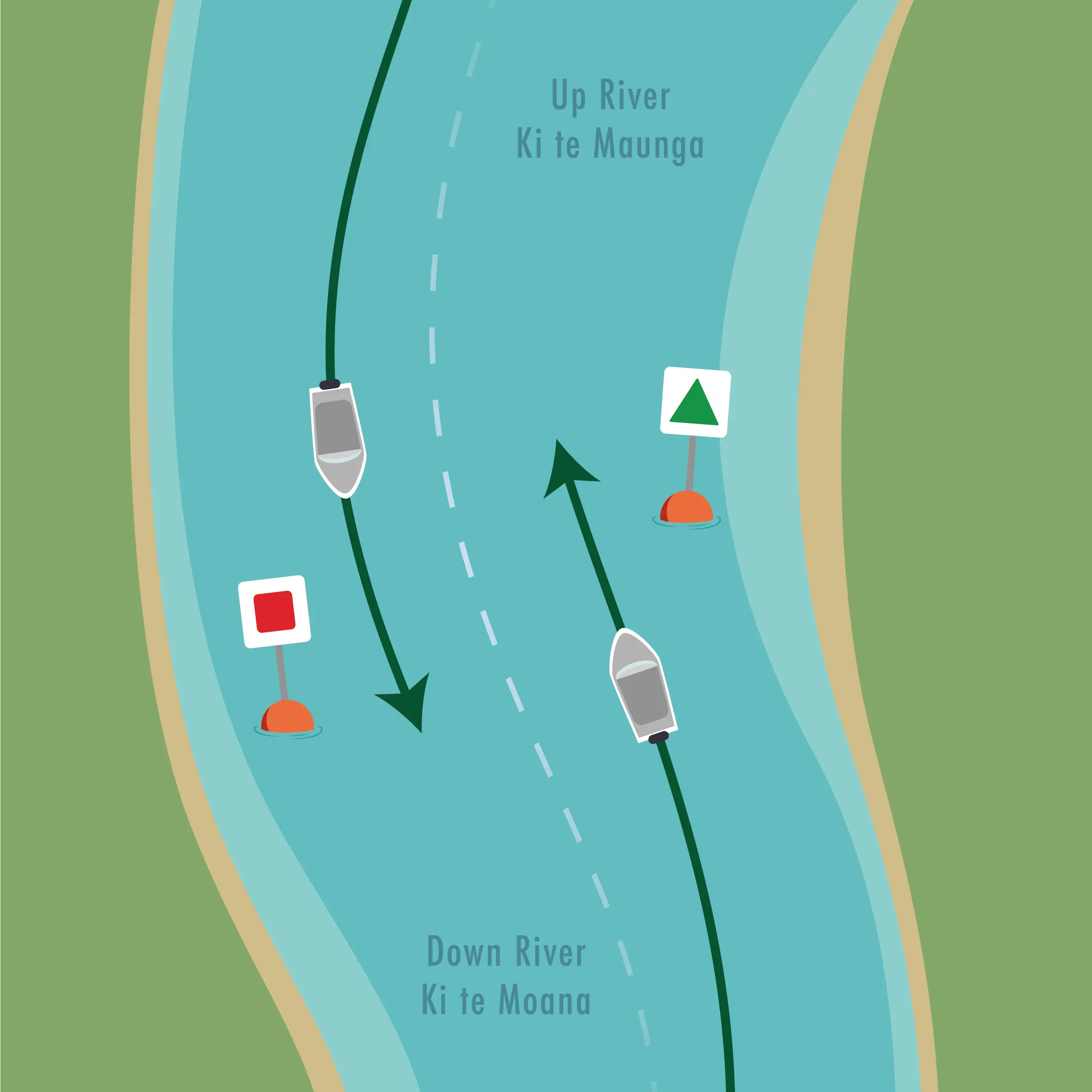 Large riverboats like the Waimarie and Wairua need all available space when turning or berthing near the city. Depending on tides, they may not fit under the City Bridge and have limited ability to manoeuvre around smaller craft, especially on an outgoing tide. Both vessels may tie up facing either upstream or downstream depending on conditions. Keep well clear when they’re turning or approaching the wharf.